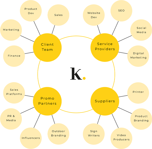 Acting as an extension of our clients’ teams, we coordinate with the internal client teams, third-party service providers, suppliers, and promotional partners to ensure everyone is aligned on the brand’s strategic objectives.